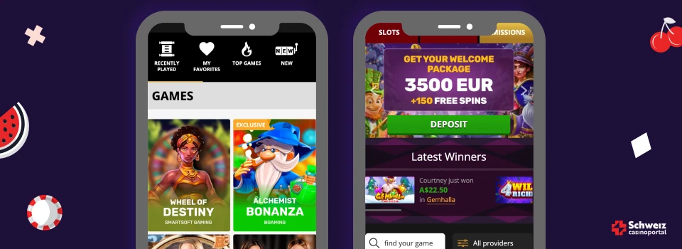 Die Casino Lobby ist umfangreich ausgestattet und umfasst neben den einzelnen Spielkategorien auch die Kategorien Top-Spiele, Neu und Daily Drops & Wins. Wenn du auf «Finde dein Spiel» klickst, gelangst du zur Suchfunktion und kannst nach deinen Favoriten suchen.